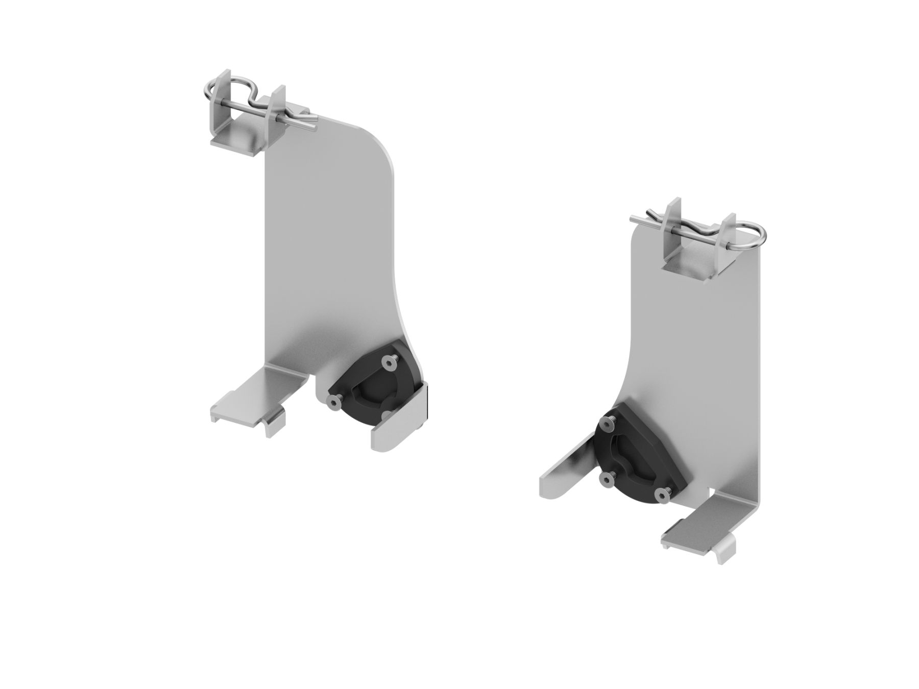 Кронштейны для установки на модули сухого монтажа со смывным бачком Uni. Комплект поставки: • 2 кронштейна для установки настенных уголков подвода горячей и холодной воды • Шумопоглощающие элементы для настенных уголков • Крепежные винты для настенных уголков • Стопорные штифты для фиксации кронштейнов