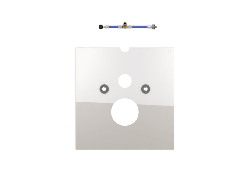 Нижняя стеклянная панель для установки сидений-биде TOTO Washlet GL и EK, Washlet Giovannoni, Villeroy & Boch Viclean U или Geberit Aquaclean 5000 и 5000 plus, в комплекте со звукоизолирующей прокладкой и отводом для подключения воды внутри бачка. В случае установки унитаза-биде TOTO или Villeroy & Boch необходим шланг для подводки воды (арт. 9660001) Размеры (В x Ш x Г): 446 x 430 x 16 мм