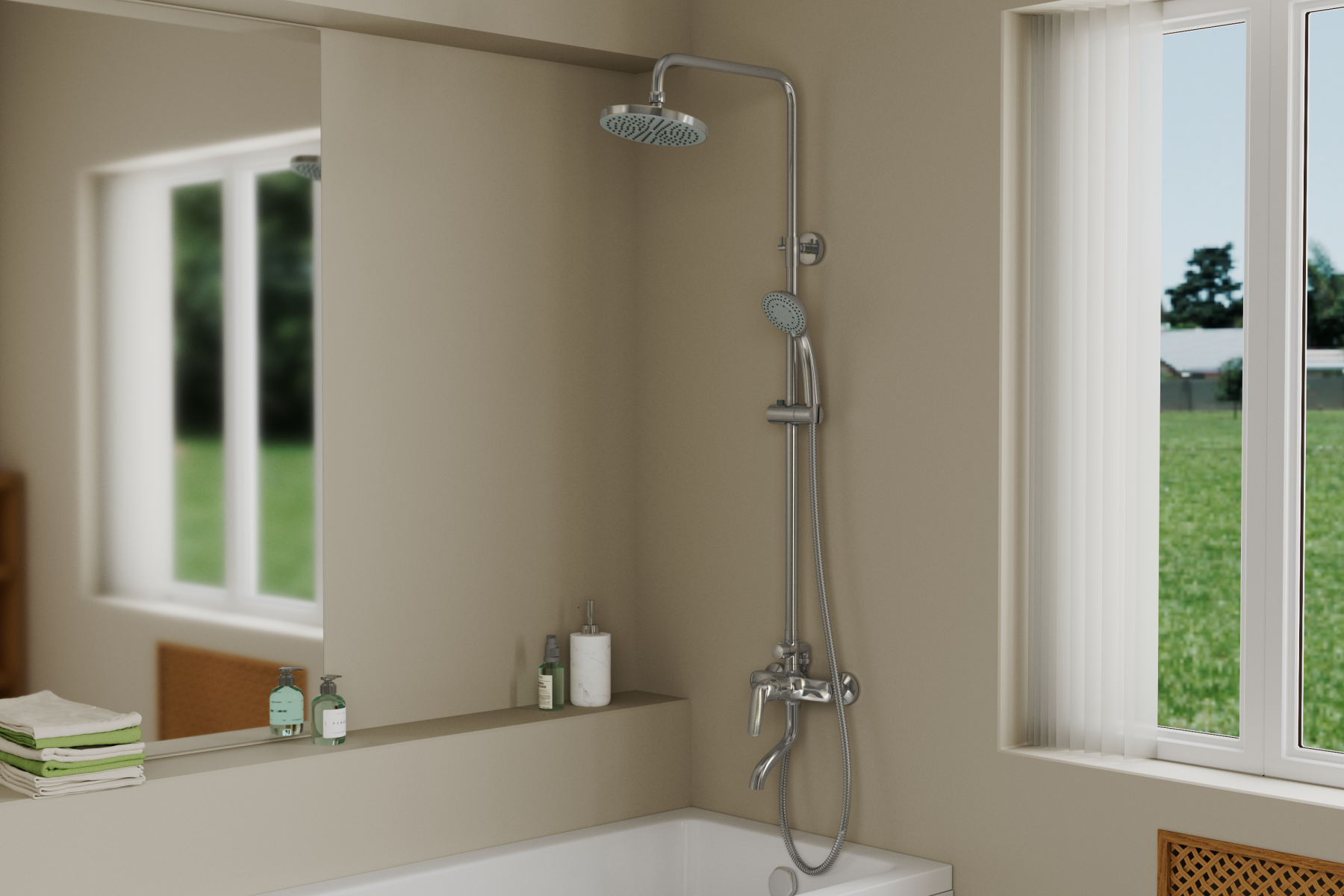 Тропическая душевая система RUSH арт. ST4235-11 из коллекции Socotra изготовлена из высококачественной латуни и имеет рычажное управление.В душевую систему установлен картридж D-35 (RSH102) с керамическими пластинами. Дивертор (переключатель) с керамическими пластинами, 2 режима. В комплекте 3х- режимная душевая лейка, 1-режимный тропический душ, изготовленный из современной прочной пластмассы с никель-хромированным покрытием, душевая штанга раздвижная, держатель душевой лейки поворотный, душевой шланг с латунными гайками 150см, смеситель, индивидуальный пакет, паспорт, гарантийный талон.