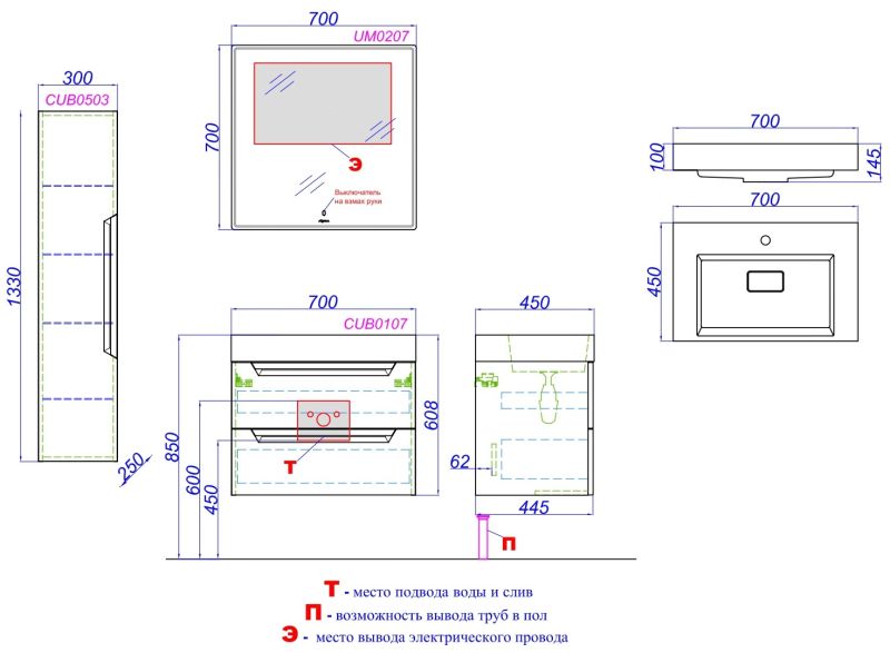 Тумба под раковину Aqwella Cube 70см белый CUB0107W купить