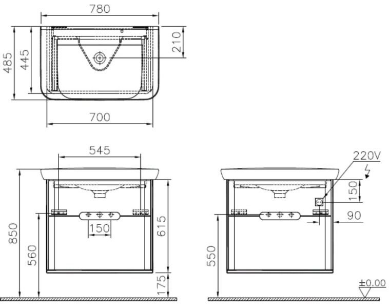 Тумба с раковиной VitrA Sento 60824 78 см купить