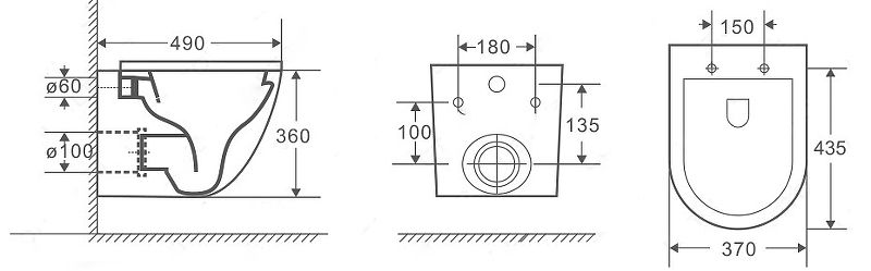 - Прилегание унитаза к стене:вплотную