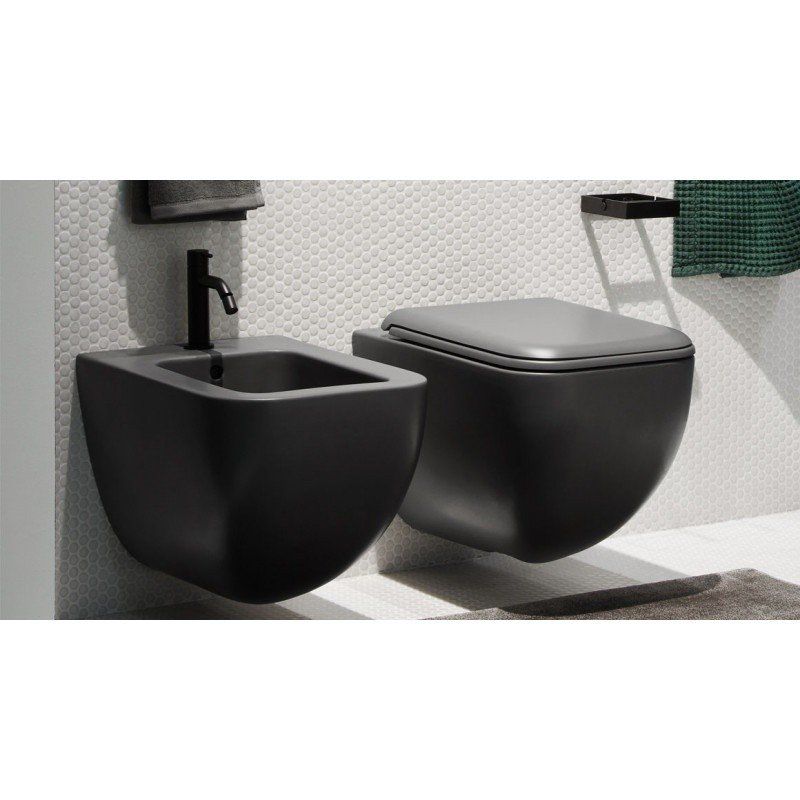 Унитаз Duravit Happy D.2 2222098900 подвесной черныйDuravit Happy D.2. 2222098900 Унитаз подвесной 36.5*54 см (черный). Безободковый, с антивсплеском, каскадный слив, длина чаши: 41 см, межосевое расстояние под крепеж шпильки: 18 см, покрытие, препятствующее образованию загрязнений, слив горизонтальный (в стену), DURAVIT Happy D.2 0064591300 сиденье с крышкой для унитаза (черный) приобретается дополнительно, гарантия - 5 лет, производство - Германия.