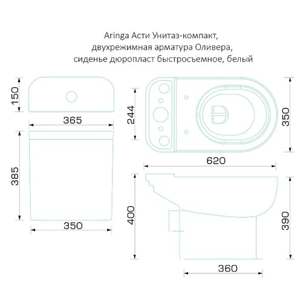 Унитаз компакт Aringa Асти AR01001WH с бачком и сиденьем МикролифтХарактеристики:Цвет: белый.