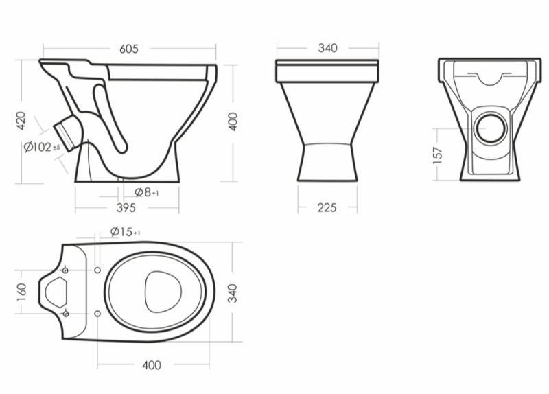 Размеры унитаза-компакта: 340 x 623 x 790