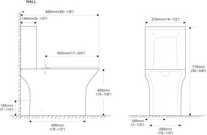 • Прилегание унитаза к стене: