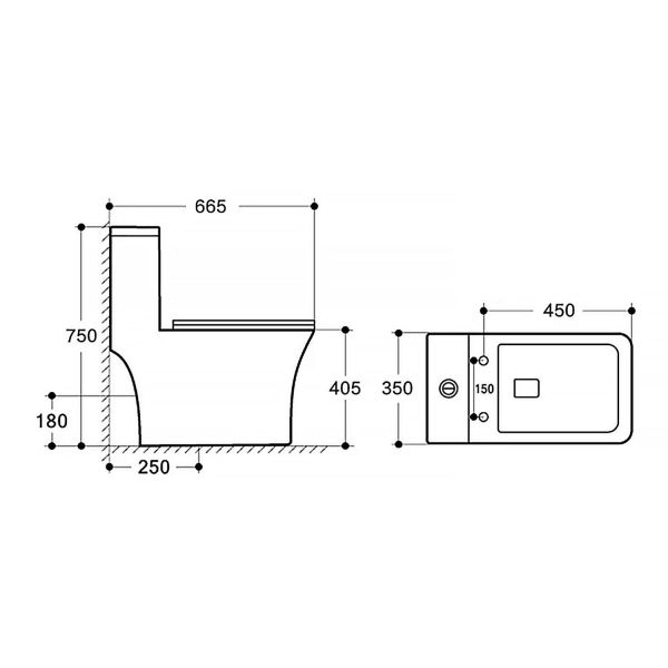 • Прилегание унитаза к стене: