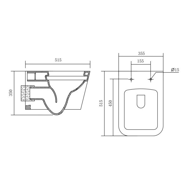 • Прилегание унитаза к стене: