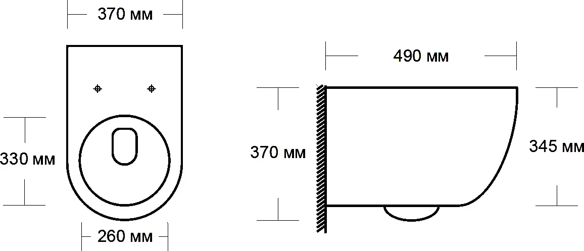 • Прилегание унитаза к стене: