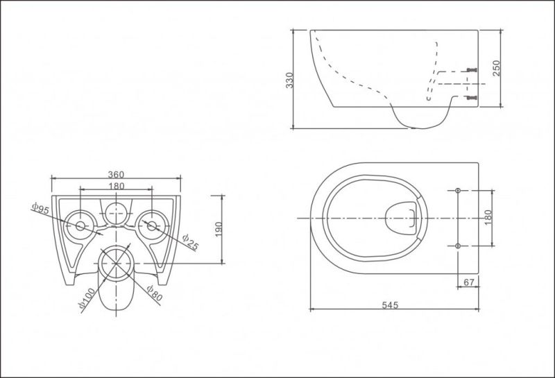 • Прилегание унитаза к стене: