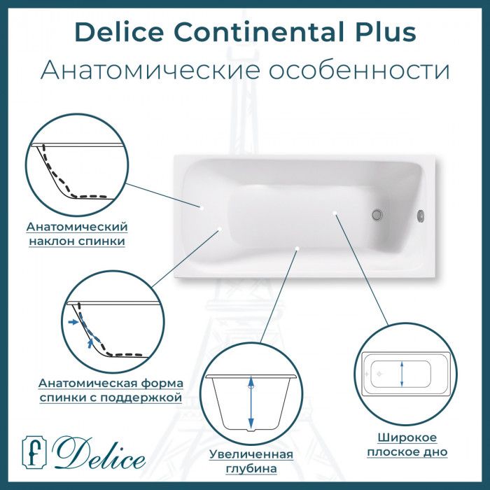 Ванна чугунная Delice Continental PLUS DLR230635 170х75 см купить
