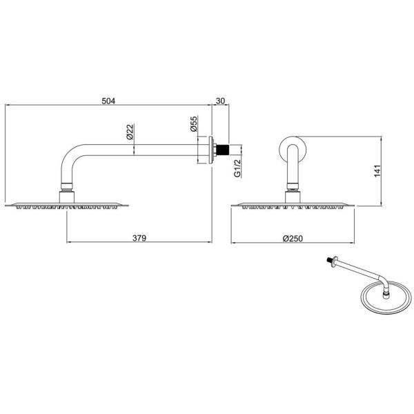 Диаметр верхнего душа: 25 см.