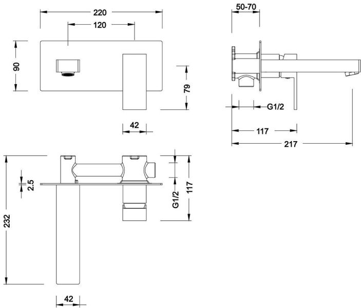 - Смеситель скрытого монтажа - 1 шт.