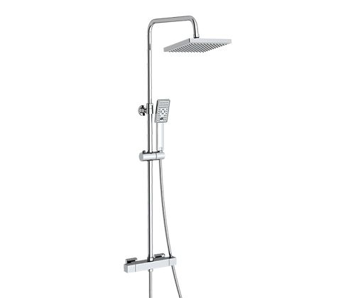 Входит в комплект: Душевая насадка 200x200 мм, 121 форсунки, ABS-пластик; Стойка для душа, Ø 22 мм регулируемая по высоте; Лейка 3-функциональная с системой защиты от известковых отложений; Шланг металлический 1500 мм, подключение к лейке; Термостатический смеситель; Термостатический картридж Vernet (Франция); Керамический поворотный переключатель; Обратные клапаны Neoperl (Германия); Набор для монтажа.