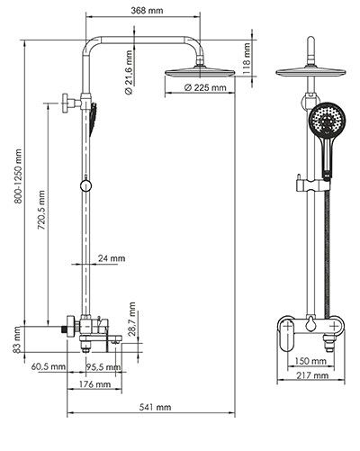 Стойка для душа, Ø 24 мм регулируемая по высоте