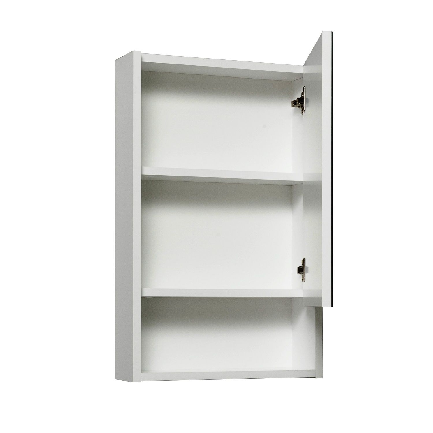 Зеркальный шкаф без подсветки с распашным фасадом и открытой нижней полкой (петли справа). Петли ... Подробнее