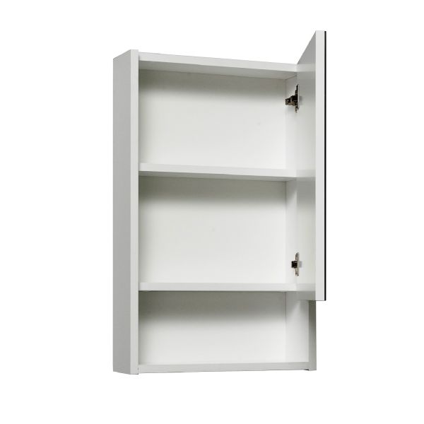 Зеркальный шкаф без подсветки с распашным фасадом и открытой нижней полкой (петли справа). Петли со встроеным доводчиком. Выпускается только в правом исполнении.