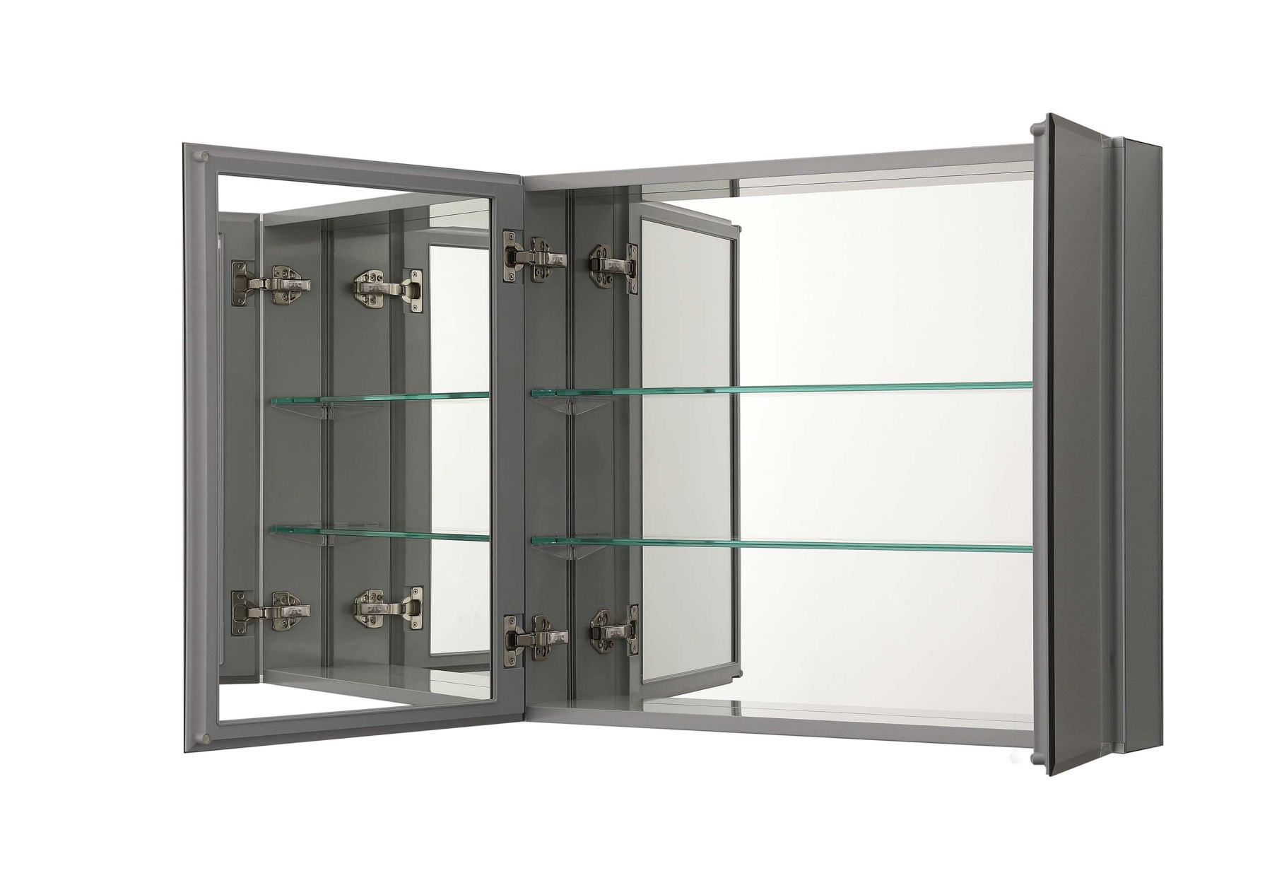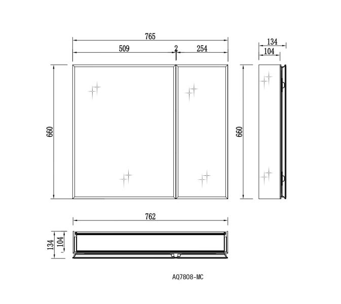 Габариты (Д В Ш), мм: 762*660*134Алюминиевый зеркальный шкаф без подсветкиФорма: прямоугольнаяМонтаж: подвесной, монтируется на поверхность или в нишуДве зеркальные дверцы шириной 50,9 и 25,5 см. Ориентация универсальная.Две стеклянные полки 6 мм.Материал: алюминийЦвет: хромЗеркальный салонПетля DTC на 110 градусов, возможна установка с левым или правым поворотом. Конструкция дверцы позволяет устанавливать ее так, чтобы она открывалась в нужную вам сторонуС механизмом доводчика, обеспечивающим плавное закрываниеМебель поставляется в собранном видеДополнительное оснащение зеркала: подвесыГарантия: 1 год
