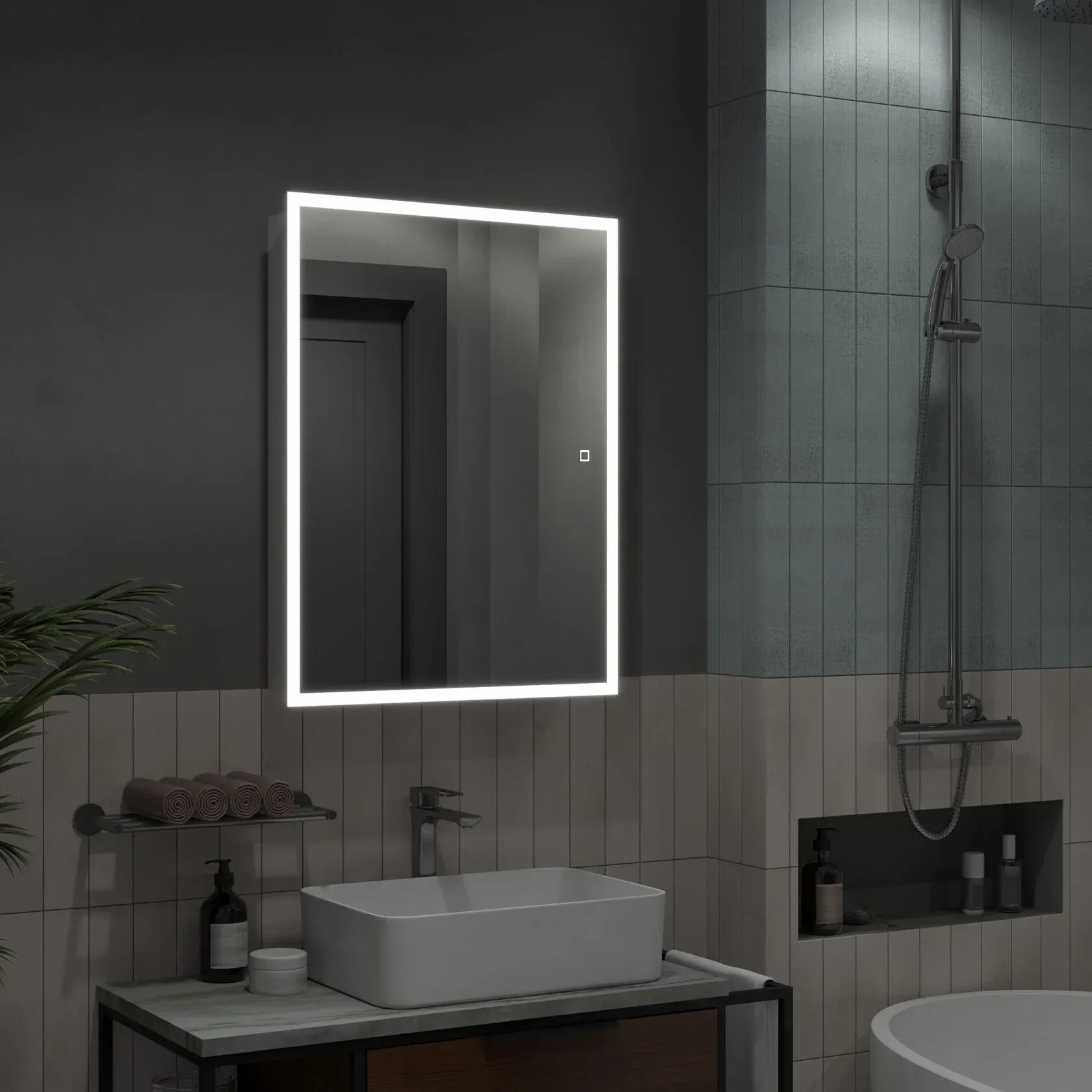 Сенсоры и розетки: розетки нет, сенсор квадратный сбоку зеркального полотна